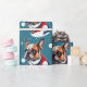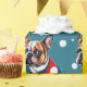 Este bonito Bulldog Francês está vestindo uma roupa de Papai noel e está rodeado por bolas de neve em um design festivo, perfeito para o seu Natal francês. Perfeito para mães francesas e amantes de cachorros, embrulhe os presentes de seus animais de estimação precioso nesta época de férias.
