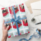 Daisy, a vara holandesa, está vestindo um bonitinho chapéu de Natal e está cercado por uma boa vermelha impressionante para este belo papel de embrulho de Natal de coelho. Copyright alcança o gato Tuxedo