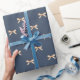 Faça seus presentes se destacarem com este elegante papel de embrulho de Natal com arcos de ouro aquoso em um rico fundo azul escuro. Perfeito para presentes festivos, decoração festiva e comemorações especiais.