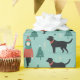 Elevem seu presente de Natal com nosso encantador cão amante do papel de embrulho de Natal. Adorados com um belo design primitivo estilo, este papel embrulho apresenta cães pretos com suas árvores humanas e natalinas flutuando num fundo azul-aqua. Traga um pouco de estilo de cachorrinho aos seus presentes nesta temporada. Nosso papel de embrulho é a escolha perfeita para fazer seus presentes se destacarem debaixo da árvore. Explorar a arte dos feriados com este papel requintado e festivo de embalagem