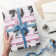 Celebrar o aniversário de 70 de 70 anos com material personalizado de Gift Wrap personalizado com listras cor-de-rosa.