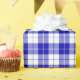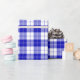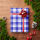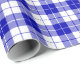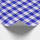 Um papel de embrulho projetado com um padrão real de xadrez azul e branco. Personalize o fundo branco entre outras opções.