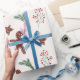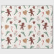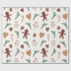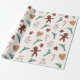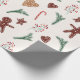 Papel de embalagem festivo de Natal com pão de gengibre, ramo de pínus e doce