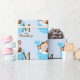 Bravo e macaco azul-bebê "M é para macaco"... plástico de presente de chá de fraldas macaco. Este doce invólucro de presente de chá de fraldas macaco-macaco castanho e azul pode ser personalizado com o seu texto no estilo de letra e na cor da sua escolha.