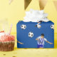 Papel de enrolamento mostrado com um impressão de jogador de futebol em um fundo azul e bolas de futebol. Personalize este item ou comprar como está.