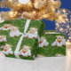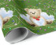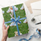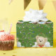 Ursinho bonito segurando um coração azul em uma cama de pedras joias multicoloridas, vestindo um arco festivo. Feliz feriado, feliz aniversário ou qualquer dia!