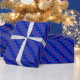 Um rolo de na moda Giftwrap, com um padrão diagonal de zigue-zague de Midnight Blue, Dazzling Blue e Plum Pink Diagonal Chevrons. Parte da coleção Posh & Painterly 'Purple Pop'.