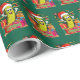Pickle com chapéu de Papai Noel e papel de embrulho de presente. Para as pessoas que gostam de picles.