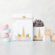 Embalagem de presente de chá de fraldas Unicórnio com rostos unicórnios adoráveis e arco-íris em um fundo branco.