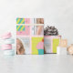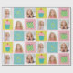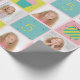 Papel de empacotamento personalizável, bonito, com até três fotos e idade de aniversário. Cor-de-rosa, azul, amarelo e púrpuras formam o cupcake e apresentam ilustrações e bolinhas.