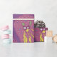 Uma criatura bonita de desenho animado em papel embrulhado.Pelas cores personalizadas para a festa infantil, presentes de aniversário para meninas.