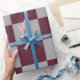 Enrole seus presentes em estilo clássico com este elegante papel de embrulho de burgundy e cinza. O padrão de tabuleiro de eterno adiciona um toque sofisticado, perfeito para qualquer ocasião, de aniversários a feriados.