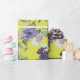 Lindas flores de aquarela roxas sobre fundo amarelo claro