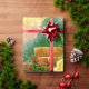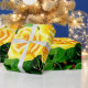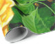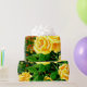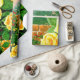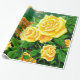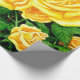 Pintura de rosas de chá amarelo brilhante subindo uma parede de tijolos.