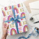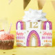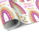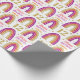 Enrole seus presentes em papel glamouroso para sua garota de aniversário. Arco-íris brilhante Dourado e cor-de-rosa no papel de embrulho de aniversário branco. Personalize o nome e a idade de um 12 personalizado.