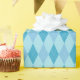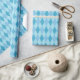 Um papel de empacotamento projetado com um padrão de tons azuis argyle em tamanho grande.