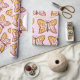 A palavra inspiradora "Amor" aparece sobre as asas de uma borboleta rosa. As cores laranja macio da borboleta são complementadas por corações amarelo e rosa. Este papel bonito de embrulho de borboletas é perfeito para qualquer ocasião de doação.
