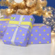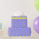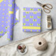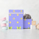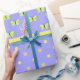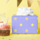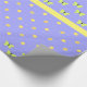 Uma borboleta fofa e um papel de embrulho de bolinhas. Placas gráficas borboletas na metade superior do papel embrulhando com bolinhas coloridas na parte inferior com uma faixa amarela no centro.