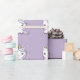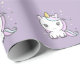 Papel de enrolamento roxo com um Unicórnio fofo e bolinhas no estilo de desenho animado. A melhor maneira de fazer presentes a uma adolescente ou a um amante dos Characters Kawaii!