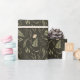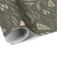 Este papel de embrulho apresenta um elegante padrão de folhas botânicas e samambaias em verde natural e beges sobre fundo escuro. A intrincada design exude sofisticação com suas ilustrações detalhadas de folhagem, fazer perfeito para qualquer ocasião doadora que exija um toque de charme da natureza.