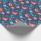 Um giro padrão de gatos de arte popular em azul marinho e vermelho decora este papel de embrulho. É divertido embrulhar um presente para um amante de gatos! Projetado para você pelo Blackberry Boulevard.