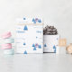 Para seus presentes de Natal, você pode usar este papel de embrulho para embrulhar seus presentes. Ela vem com uma paisagem nevada em um estilo de pintura aquosa com algumas árvores de abeto e uma casa roxa e o texto Feliz Natal!