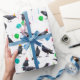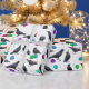 Corvos negros e corvos com chapéus e balões coloridos neste papel festivo de embalagem de aniversário.