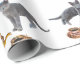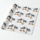 Dois gatinhos de cinza têm chá com porcelana vintage neste papel de embalagem antiquado.