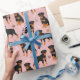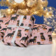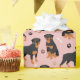 Cães girassóis bonitos sentam-se e ficam de pé com casacos pretas e bronzeadas com ossos de cão espalhados e padrões de pegadas.