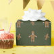 Este papel de embrulho é coberto por um padrão de gengibre estilo cartoon, com todos os adornos clássicos, incluindo botões de gomo e detalhes do glacé.
