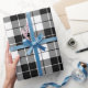 Papel de embalagem concebido com uma xadrez preta e branca, em grande escala. Personalize o fundo branco entre outras opções.