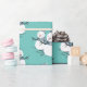 Uma adorável trio de bonecos brancos de neve em fundo azul claro cria um design de feriado festivo para todos.