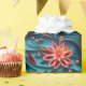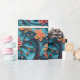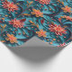 Um belo papel de embrulho com um padrão floral de papel sem costura contra um fundo azul.