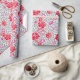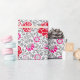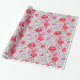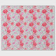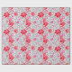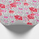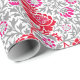 Papel de embrulho num design de papel de parede William Morris de flores em cor-de-rosa profundo e fuchsia, com cinzas de prata/cinzas de folha, contra fundo branco