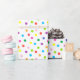 Um papel de embrulho com um padrão de pontos colorido sobre um fundo branco. Personalize o tamanho do padrão, a cor do plano de fundo entre outras opções.
