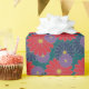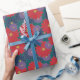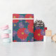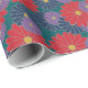 Grande vermelho escarlate, azul médio marinho, e pequenas flores roxas púrpuras reais, como margaridas, estão espalhadas por um rico fundo verde da selva para criar um padrão floral colorido que é perfeito até para o outono.