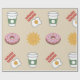 Este papel de embalagem alegre e balbucioso traz um sorriso! Completo com uma caneca de café, ovos e bacon, sol sorridente, e uma rosquinha com aspersas! Use na sua próxima festa de brunch como um corredor de mesa ou presente para qualquer celebração!