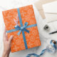Papel de regalo con copos de nieve sobre fondo naranja