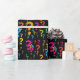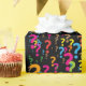 Con el papel de regalo " Interrogante", cualquier regalo será muy especial. Su diseño está hecho para llamar la atención, y será un foco en la mesa de regalos, los invitados no podrán cambiar la mirada. Con fondo negro, y colores llamativos rosados , naranjas verdes, se ha diseñado este patrón fascinante. ¡Un envase elegante y moderno para cualquier regalo