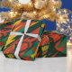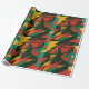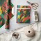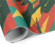 Diseño abstracto en tonos rojos, verdes y amarillos con formas dentadas y texturas dinámicas que evocan energía, fuerza y movimiento. Un patrón vibrante y lleno de contraste, perfecto para envolver regalos con un estilo atrevido, alternativo y moderno
