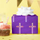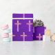 O nosso Papel Dourado Crucifixo de Natal em Púrpura mostra crucifixos de ouro impressos em fundo de película roxa.