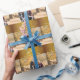 Papel de embrulhamento de fotos de Natal em ouro abençoado personalizado com fotos e texto personalizáveis - você pode adicionar sua foto e seu nome de família. Fotografia © Storytree Studios, Stanford, CA