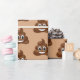 Um belo poo feliz / emoji de cocô sobre papel de fundo marrom-claro.
