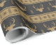 Este papel embrulhado, maravilhosamente desenhado, apresenta sutis cabeças de veados de ouro contra um fundo preto rico, embelezado com flocos de neve delicados e árvores verdes. Perfeito para embrulhar presentes de Natal, adiciona um toque de elegância e espírito festivo às suas comemorações de Natal.