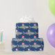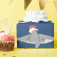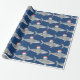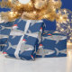 Os entusiastas dos tubarões adorarão este papel de embrulho humorístico. Que jeito estranho de dizer Feliz Feriados!