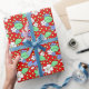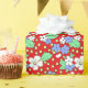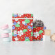 Este papel de embrulho floral apresenta um fundo vermelho com flores brancas e azuis desenhadas à mão e folhas verdes, e seria perfeito para o aniversário de uma mulher ou para o chá de fraldas de um Bebê em Bloom. É uma adição colorida à sua doação de presente, e vai iluminar o seu dia. Este padrão foi inspirado por designs no tecido do saco de alimentação antigo, e ele tem uma vibração retrógrada do país.