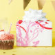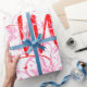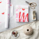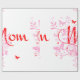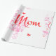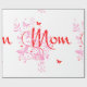 Papel de embrulho elegante para presentes de mãe. Um design gráfico de arte floral cor-de-rosa com borboletas vermelhas e a palavra MOM escrita em uma letra vermelha. Dê a mamãe seu presente especial de Dia de as mães, presente de aniversário, presente de aniversário, presente de Natal embrulhado neste belo papel de embrulho feito apenas para ela.