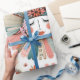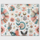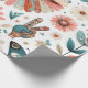 Espalhe as vibrações da paz e do amor com este vibrante e inspirado na boêmia design de papel embrulhado. Apresentando uma bela mulher com a morada de ornamentado cercada por flores brancas, borboletas, pássaros e símbolos de paz em tons quentes de coral, turquesa e tons de terra. Perfeito para embrulho de presente ou artesanato com um talho retrô divertido dos anos 60.