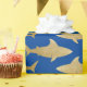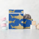Enrole seus presentes de amantes de tubarões neste papel de embrulho de padrão de tubarão dourado elevado.