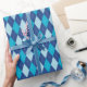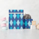 Um papel de embrulho projetado com um padrão de estilo azul em tamanho grande.